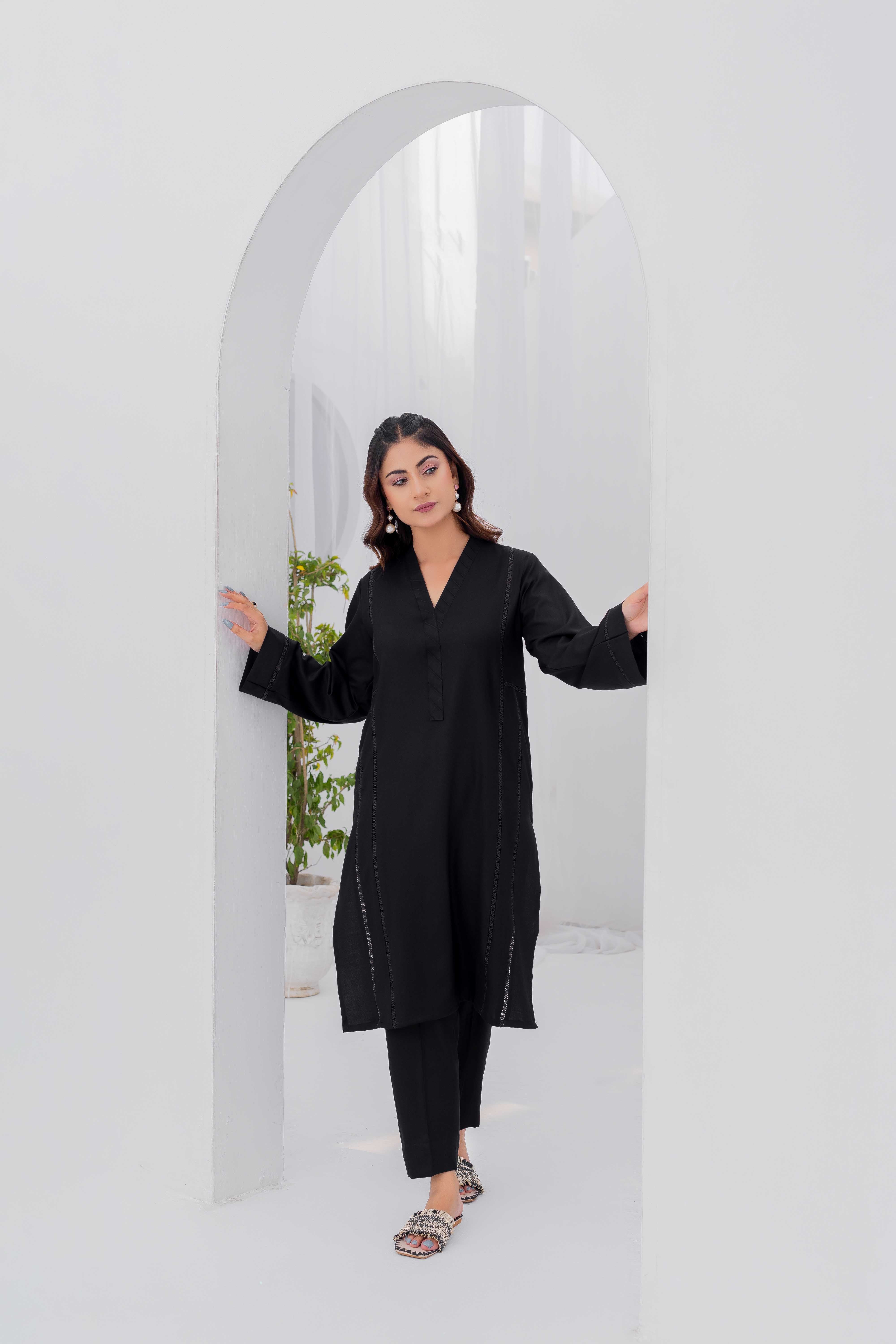 Elevate your style with our black two-piece embroidered article, featuring a beautifully crafted shirt and matching trousers. Intricate embroidery adds a touch of sophistication, making it perfect for any occasion. With its unique hue and luxurious fabric, this ensemble effortlessly combines modern elegance and comfort.
