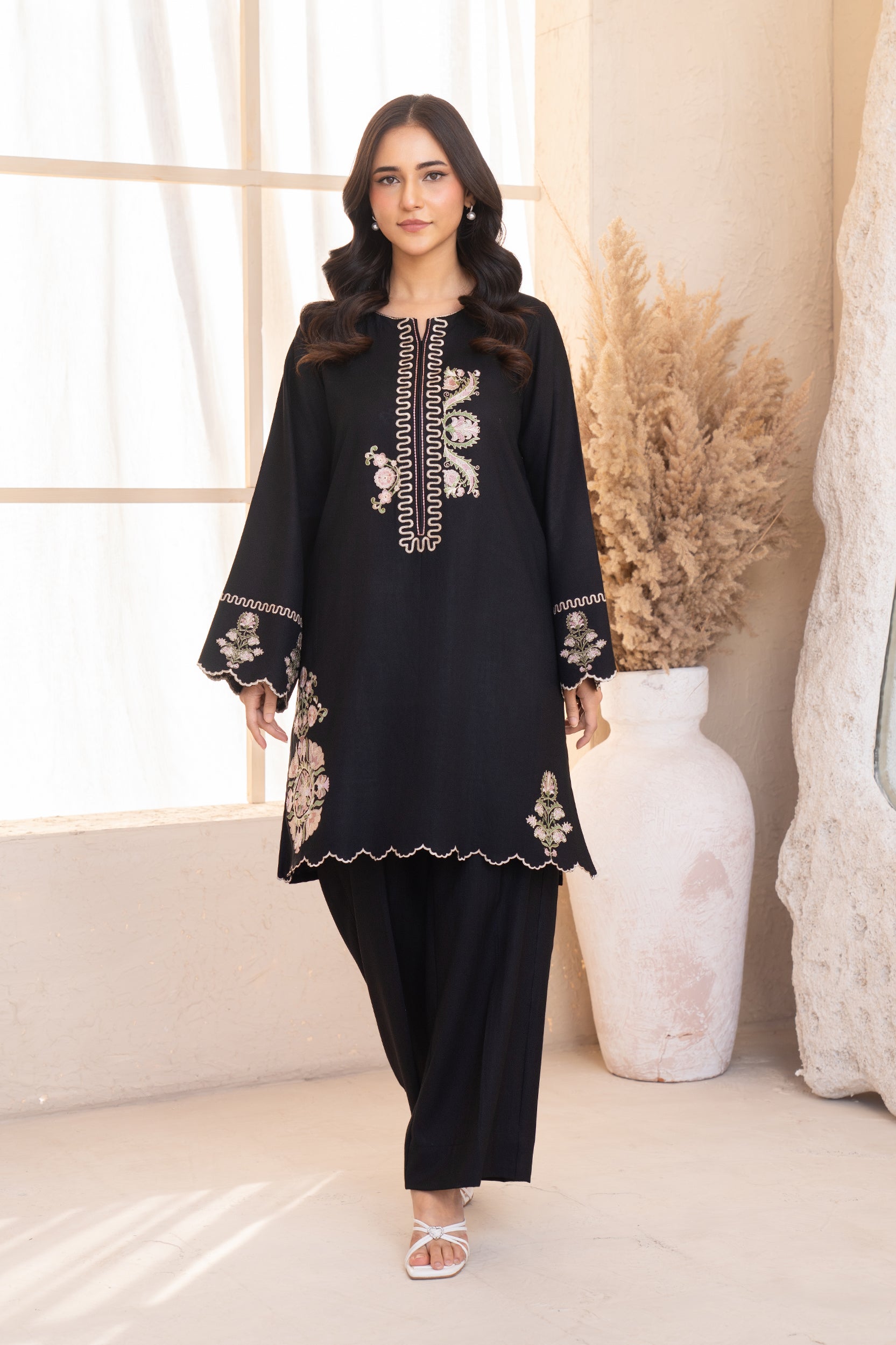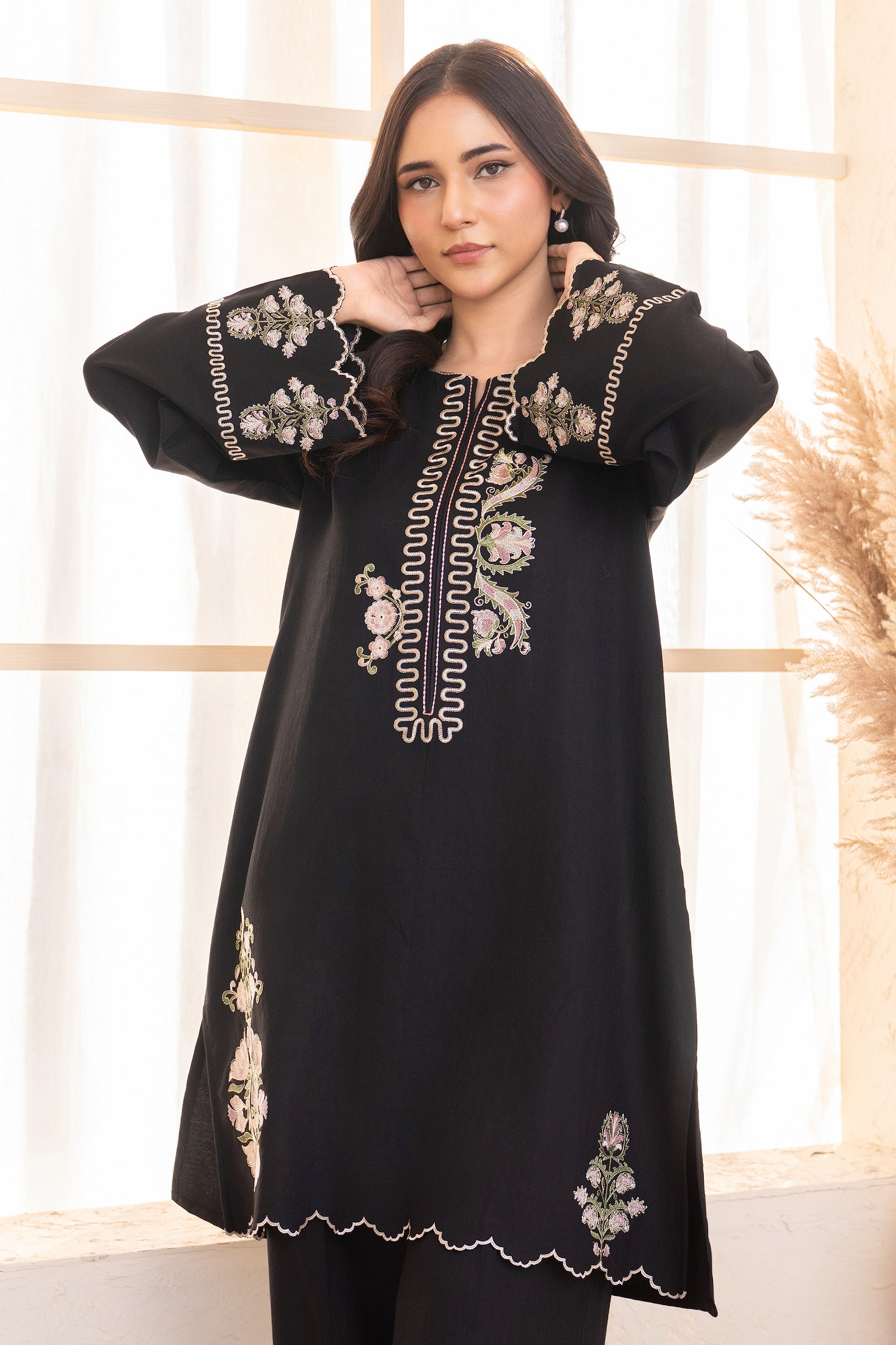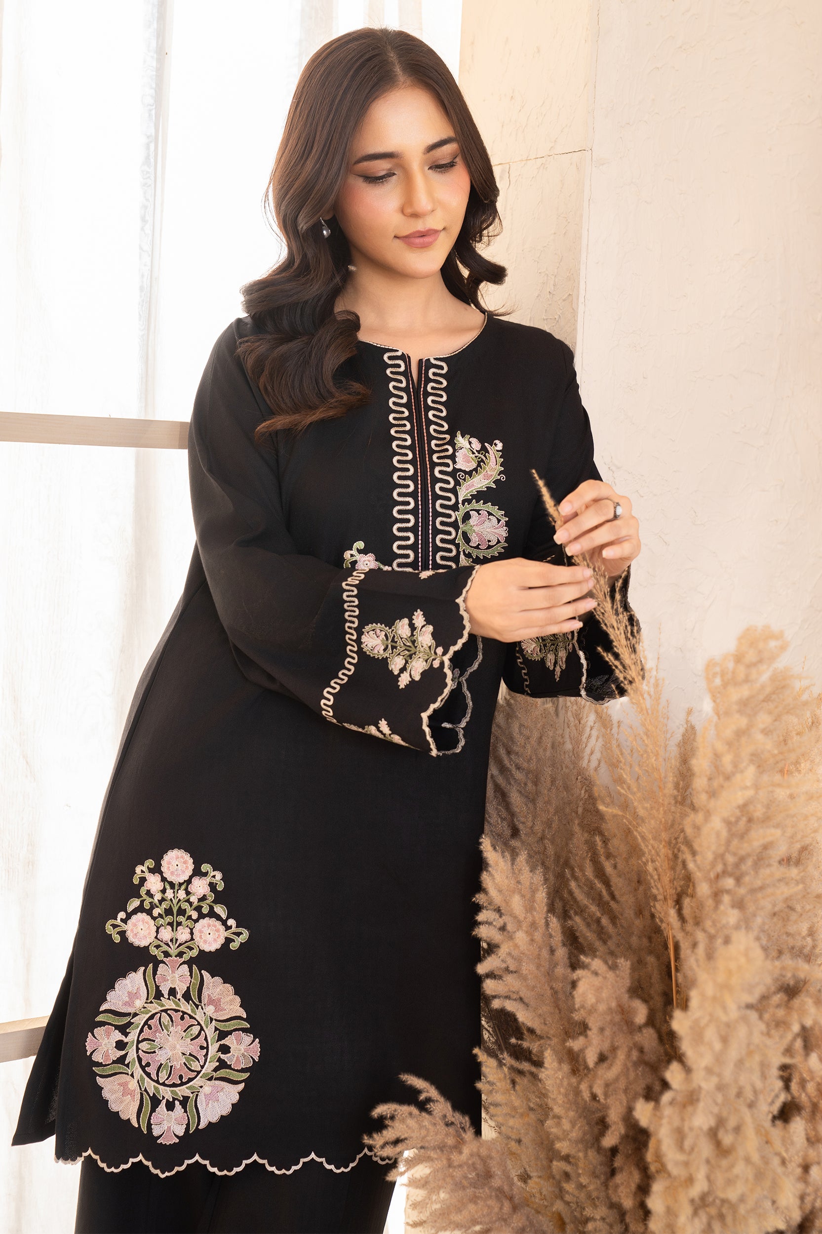 Elevate your style with two-piece embroidered article, featuring a beautifully crafted shirt and matching trousers. Intricate embroidery adds a touch of sophistication, making it perfect for any occasion. With its unique hue and luxurious fabric, this ensemble effortlessly combines modern elegance and comfort.