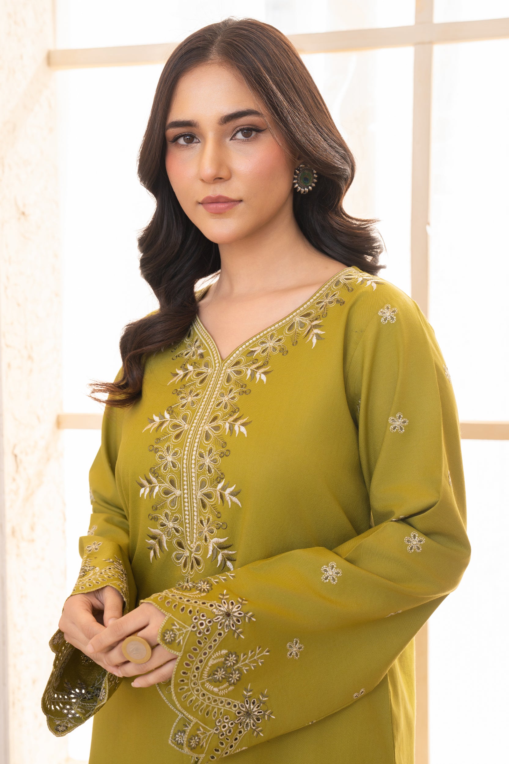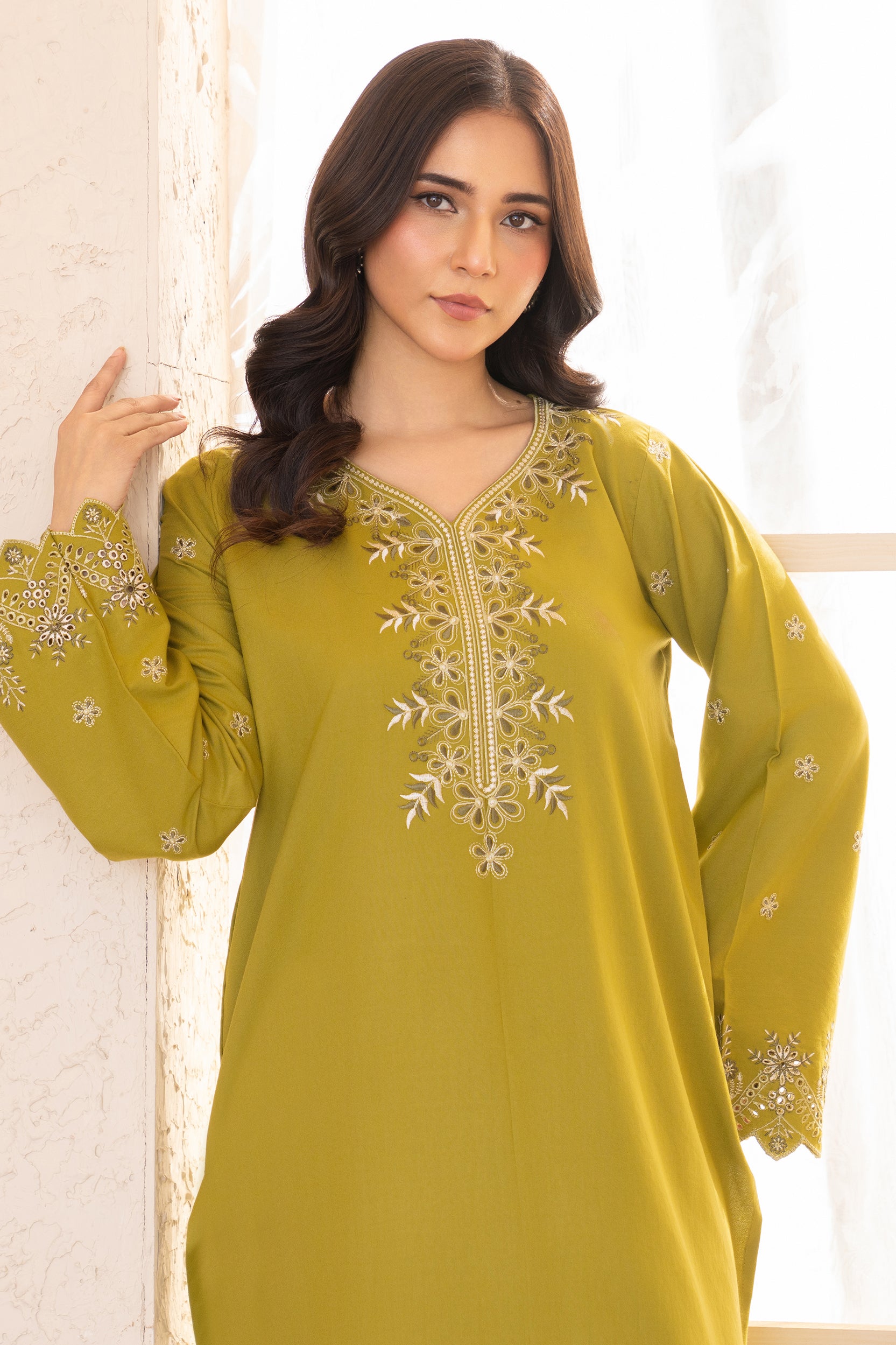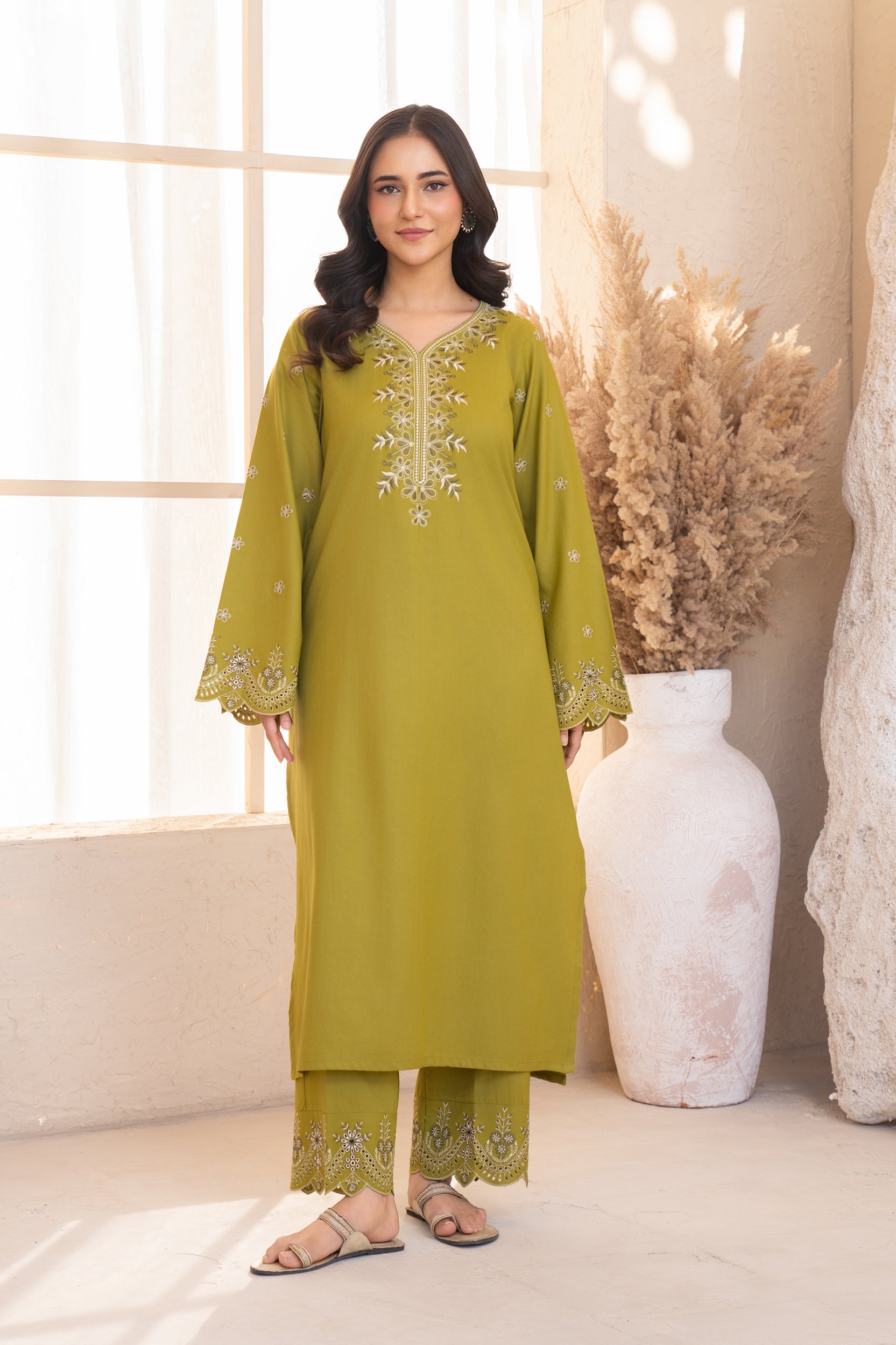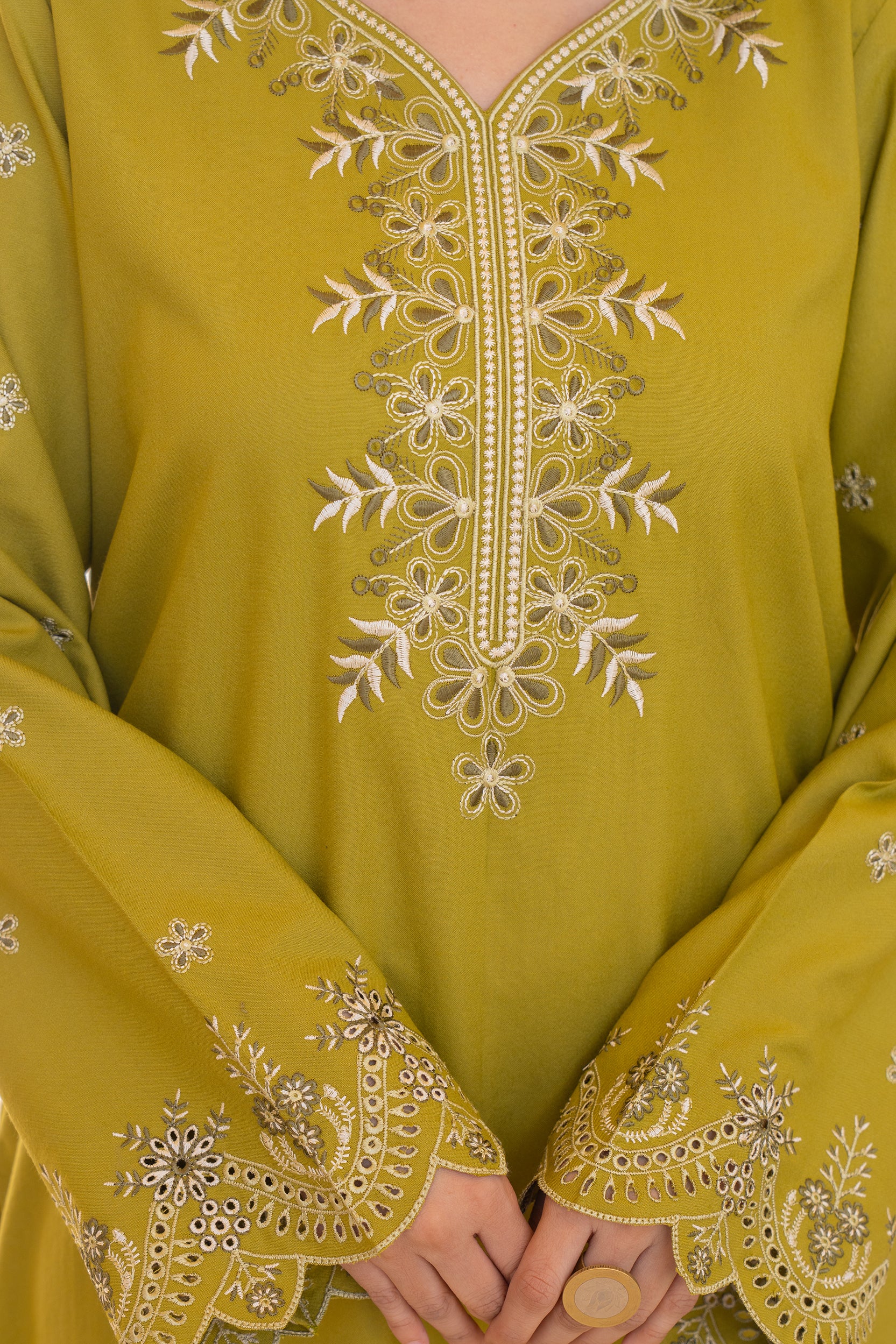 Elevate your style with two-piece embroidered article, featuring a beautifully crafted shirt and matching trousers. Intricate embroidery adds a touch of sophistication, making it perfect for any occasion. With its unique hue and luxurious fabric, this ensemble effortlessly combines modern elegance and comfort.