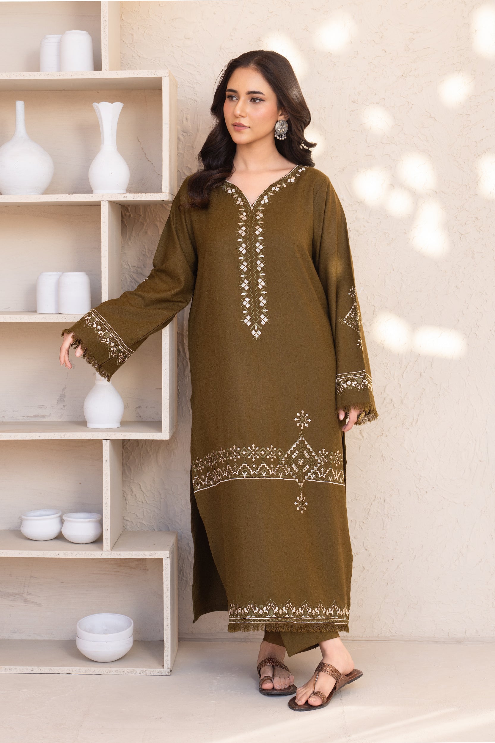 Elevate your style with two-piece embroidered article, featuring a beautifully crafted shirt and matching trousers. Intricate embroidery adds a touch of sophistication, making it perfect for any occasion. With its unique hue and luxurious fabric, this ensemble effortlessly combines modern elegance and comfort.