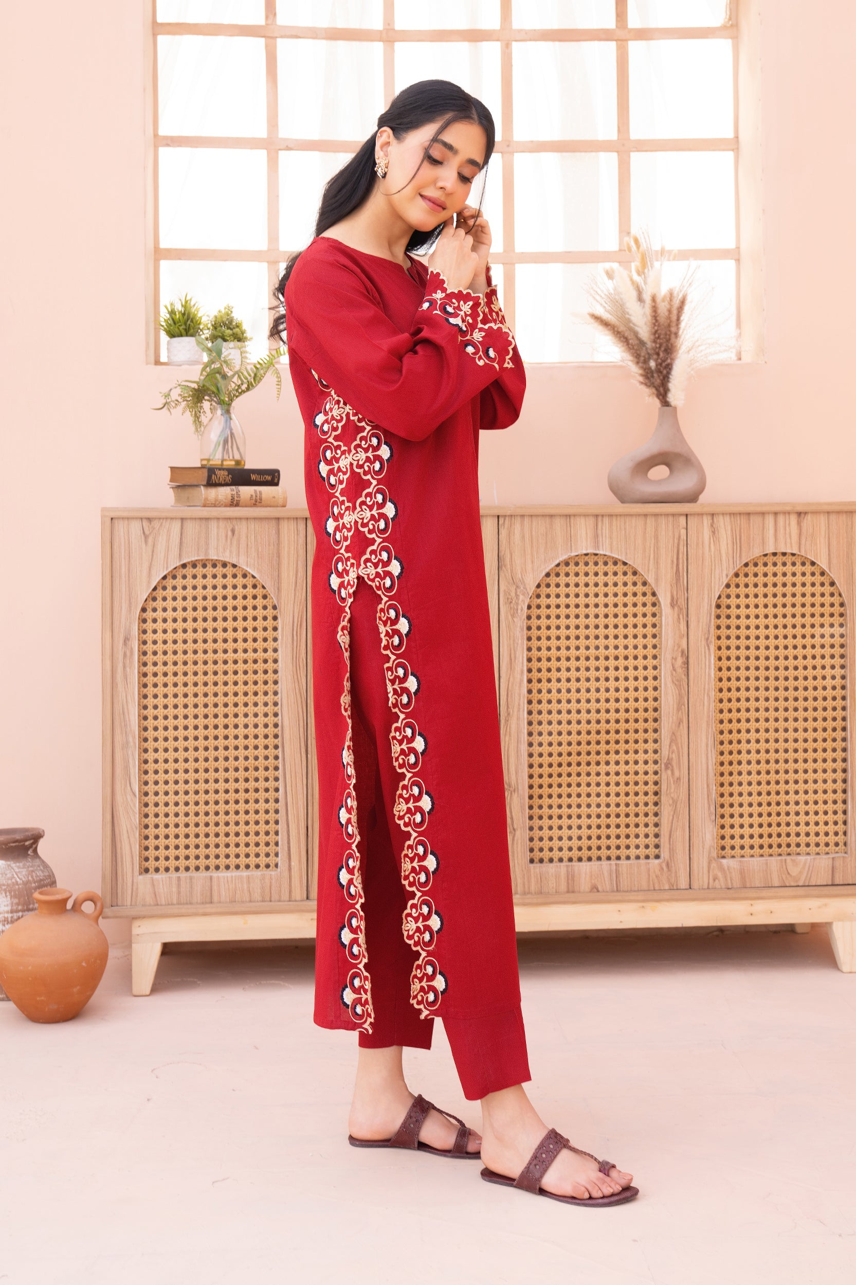 Elevate your style with our two-piece embroidered article, featuring a beautifully crafted shirt and matching trousers. Intricate embroidery adds a touch of sophistication, making it perfect for any occasion. With its unique hue and luxurious fabric, this ensemble effortlessly combines modern elegance and comfort.